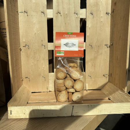 Tous les croûtons La Chanteracoise sont fabriqués sans aromatisation artificielle. Nature,au comté AOC ou à l’ail,ils accompagnent parfaitement les soupes de légumes ou de poissons. Ils sont secs,non gras et très croustillants. Poids: 100g Ingrédients: farine de blé*du Poitou-Charente T65( gluten),ail ( 5%),levure boulangère,sel de l Île de ré.*Produits issus de l'agriculture biologique DLUO (date limite d'utilisation optimisée) : 1 an Ils accompagnent parfaitement les soupes de poissons. Tous ces ingédients sont garantis : sans OGM,sans colorant,sans conservateur,sans matière grasse hydrogénée sans huile de palme.