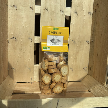 Ils seront délicieux avec un gaspacho de tomates. Ils sont secs,non gras et très croustillants. Poids: 100g Ingrédients: farine de blé*du Poitou-Charente T65( gluten),ail ( 5%),levure boulangère,sel de l Île de ré.*Produits issus de l'agriculture biologique DLUO (date limite d'utilisation optimisée) : 1 an Ils accompagnent parfaitement les soupes de poissons. Tous ces ingédients sont garantis : sans OGM,sans colorant,sans conservateur,sans matière grasse hydrogénée sans huile de palme.