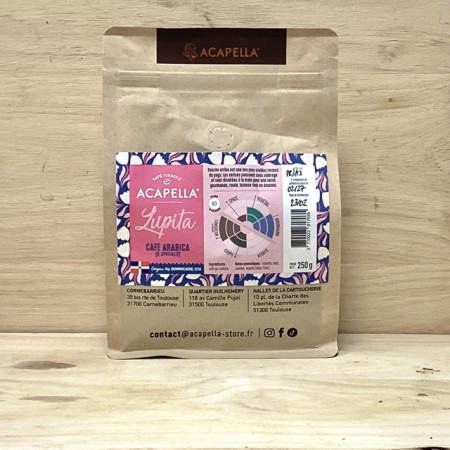 Lupita est un café de spécialité pur Arabica, cultivé à 1 200 m d’altitude dans la région de Rancho Arriba (République dominicaine), sous la supervision d’Hector Jiminez. Récolté à la main, il révèle une tasse douce et intense, aux notes gourmandes de noisette, miel et caramel, avec une subtile touche végétale évoquant le tabac frais. Torréfié avec soin en Haute-Garonne par Acapella, ce café noté 83/100 incarne l’authenticité.