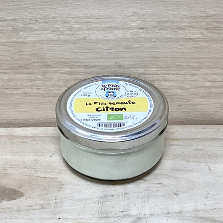 Une semoule au lait délicieuse. Un vrai dessert de gourmands ! Composition: 50% lait bio entier,29.8% lait bio écrémé,10.8% sucre de canne bio,semoule bio 9.4%,citron