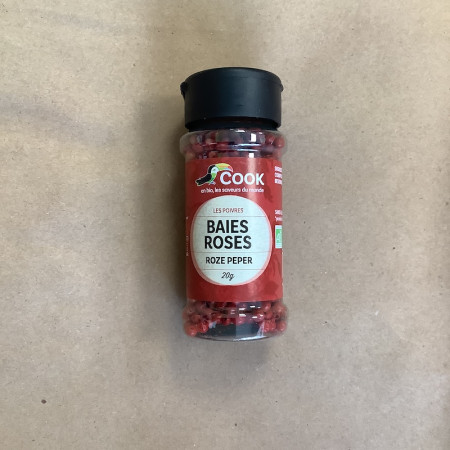 Les baies roses ont un léger goût piquant aux notes sucrées et anisées. Son piquant n'est que peu présent. Il accompagnera vos marinades,carpaccio,pâtisseries au chocolat et salades de fruits.