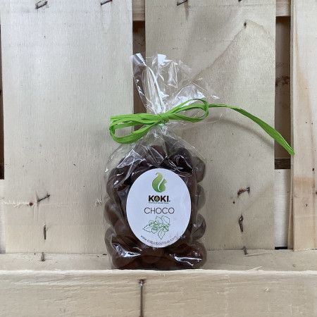Noisettes enrobées de chocolat noir et au lait.