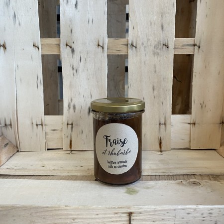 Ingrédients : Rhubarbe de Normandie,fraises d'Occitanie,sucre,jus de citron bio,agar agar bio.