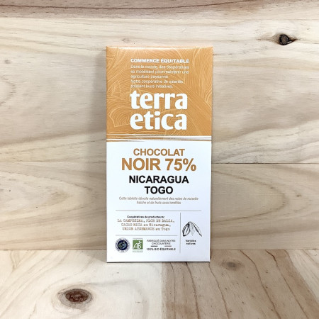Tablette de chocolat au Noir BIO Nicaragua Togo 75%, 100g