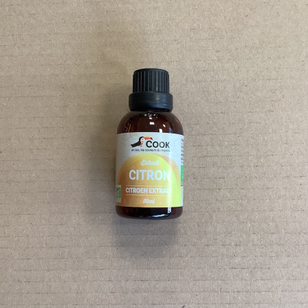 Composition : extrait de citron*, éthanol* (15% vol.). * : produit issu de l'agriculture biologique certifiée par FR-BIO-01.