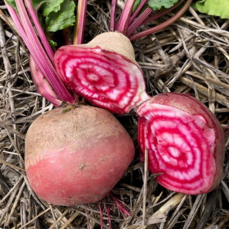 La Betterave de Chioggia est une variété très hâtive. La Betterave de Chioggia est ronde, à la chair sucrée, rose veinée de blanc. Sa magnifique chair la rend très décorative en cuisine. Elles se consomment crues, râpées en vinaigrette ou cuites dans les salades.