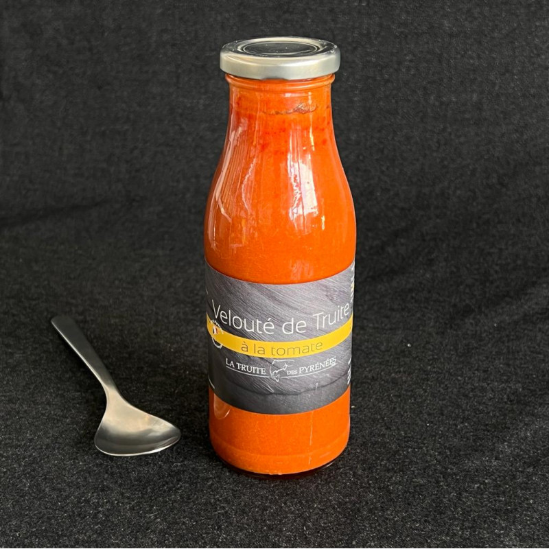 Ingrédients : Tomates (60%), chair de truite (15%), pommes de terre, oignons, poireaux, bouillon de poisson, huile d'olive, sel, sucre, amidon modifié (sans OGM), ail et épices naturelles.