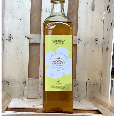 Une huile de colza qui est issue des grains cultivés dans les champs de la Ferme O Pâtes et pressés à la ferme avec leur propre presse : c'est une huile obtenue par première pression à froid.