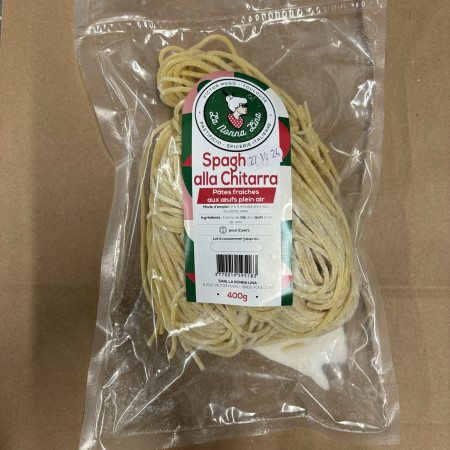 Des pâtes fraiches aux oeufs comme on aime les manger. Un goût riche en oeufs,une texture douce en bouche,des pâtes fermes et croquantes. Un vrai régal avec un simple bout de beurre ou bien accomodées avec votre sauce préféré. Fabrication traditionnelle et artisanale,pâtes laminées à la main. Sans additifs,sans colorants sans conservateurs chimiques. Portion En plat principal: portion pour 2 à 3 personnes En accompagnement : portion pour 4 personnes