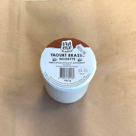 Laissez-vous séduire par le yaourt brassé à la noisette de la Laiterie Blanca,un véritable délice qui marie la douceur du lait local à la richesse naturelle de la noisette.