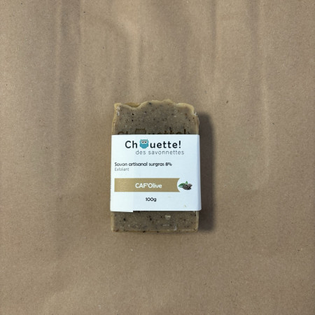Un savon à l'huile d'olive, huile de coco, beurre de karité et huile de ricin qui est exfoliant , grâce à l'ajout de café bio et équitable.