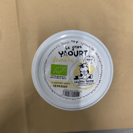 Yaourts Fermiers à la vanille Pot familial de 700 g,l'équivalent de 5 gros yaourts.