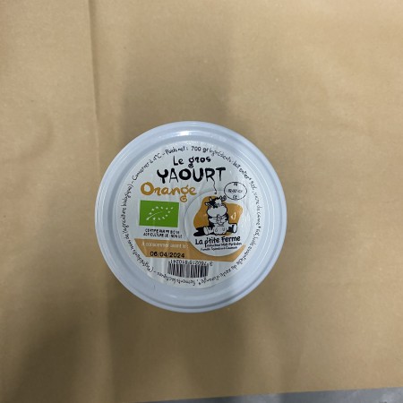 Yaourts Fermiers à l'orange Pot familial de 700 g,l'équivalent de 5 gros yaourts.