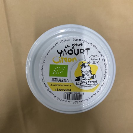 Yaourts Fermiers au citron Pot familial de 700 g,l'équivalent de 5 gros yaourts.