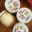 Yaourts Fermiers nature et à la confiture d'abricot bio . Pot de 125 g La confiture que Nicolas utilise est produite en France avec des abricots produits eux aussi en France. Fabriqués à la ferme par Nicolas Teyssedou et son équipe Nicolas veille particulièrement à maitriser l'acidité de ses yaourts,vous pourrez donc apprécier sereinement ces yaourts. Livrés dans de petits paniers que nous récupérons lors de votre prochaine livraison. Vous pouvez aussi y joindre les pots de yaourts que vous aurez préalablement lavés. Ainsi nous évitons les gaspillage inutile. Nicolas quant à lui nettoie et stérilise ces pots selon les normes d'hygiène drastiques qui entoure la production laitière. Mode de fabrication Les yaourts sont fabriqués à partir du lait bio produit sur la ferme par les 16 vaches laitières de l'exploitation. Les vaches sont nourries avec l'herbe et le foin de l'exploitation. L'ensillage y est proscris afin de limiter l'acidité du lait. Le lait pourra avoir un gout légèrem